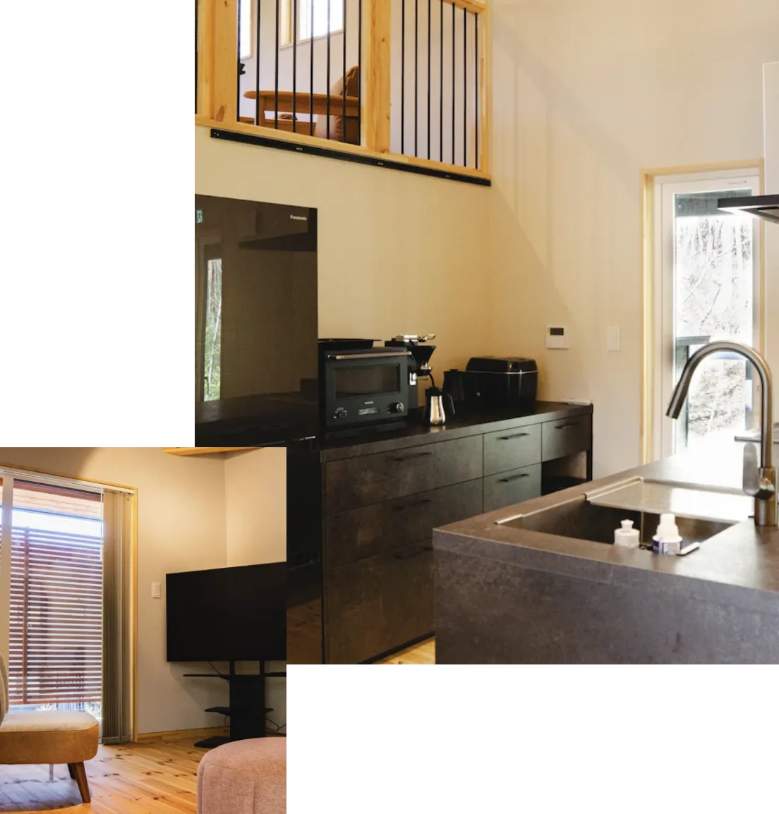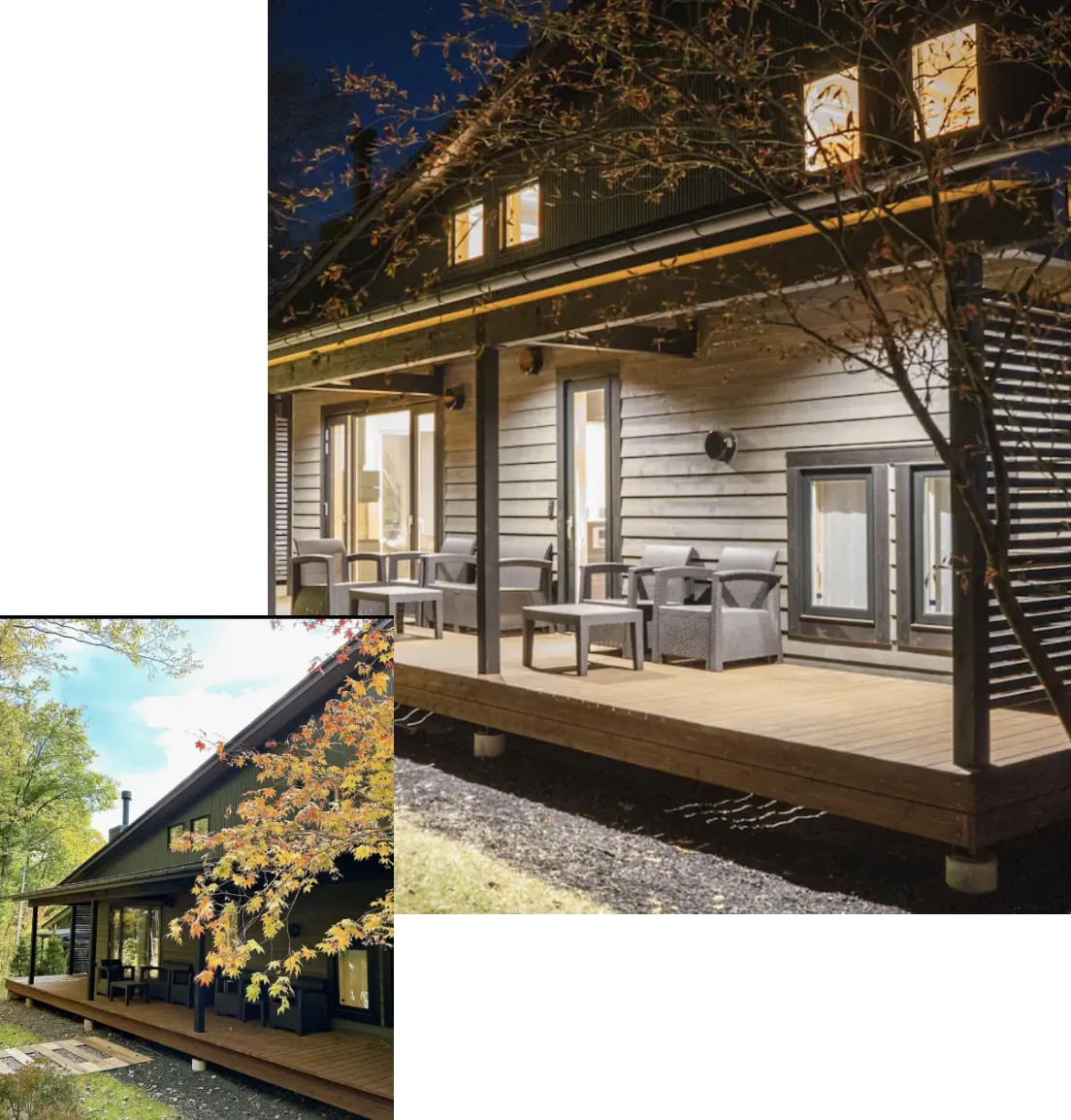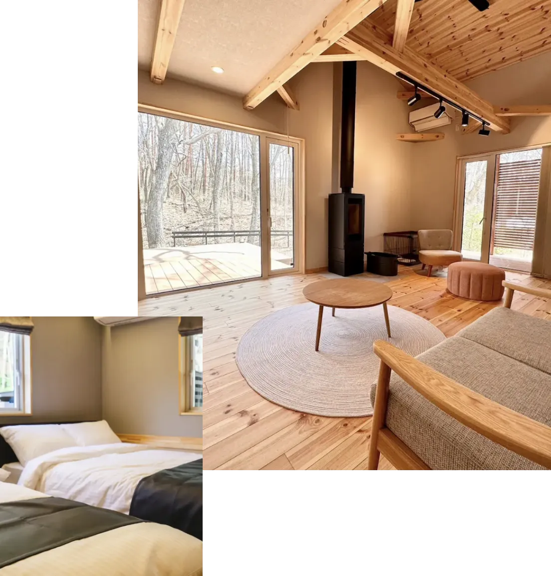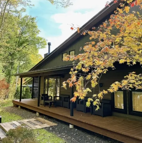 VIEW MORE広々としたテラスが魅力の開放感あふれるヴィラ。国有林に面したウッドテラスでは、四季折々の美しい景色の中ゆったりとした時間をお過ごしいただけます。お部屋の中にはカラフルでかわいらしい家具が配されており、心からリラックスできる癒しの空間が広がっています。