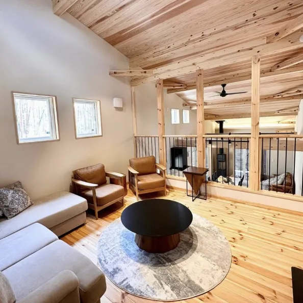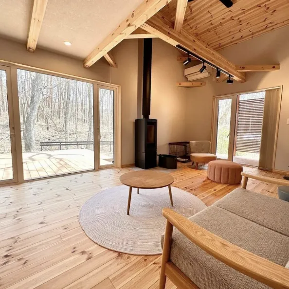 VIEW MORE広々としたテラスが魅力の開放感あふれるヴィラ。国有林に面したウッドテラスでは、四季折々の美しい景色の中ゆったりとした時間をお過ごしいただけます。お部屋の中にはカラフルでかわいらしい家具が配されており、心からリラックスできる癒しの空間が広がっています。